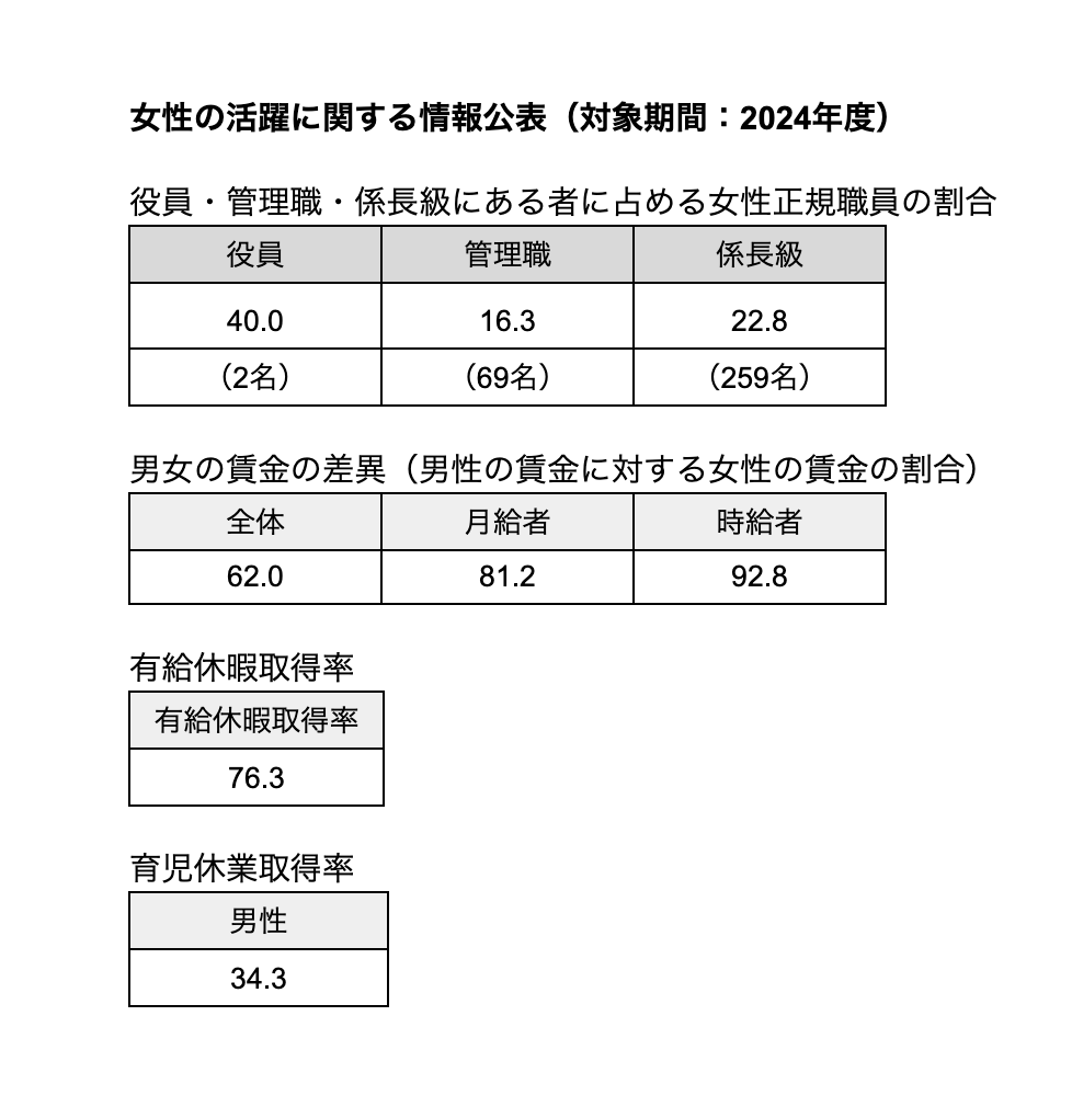 女性の活躍に関する情報公表(対象期間:2024年度)
