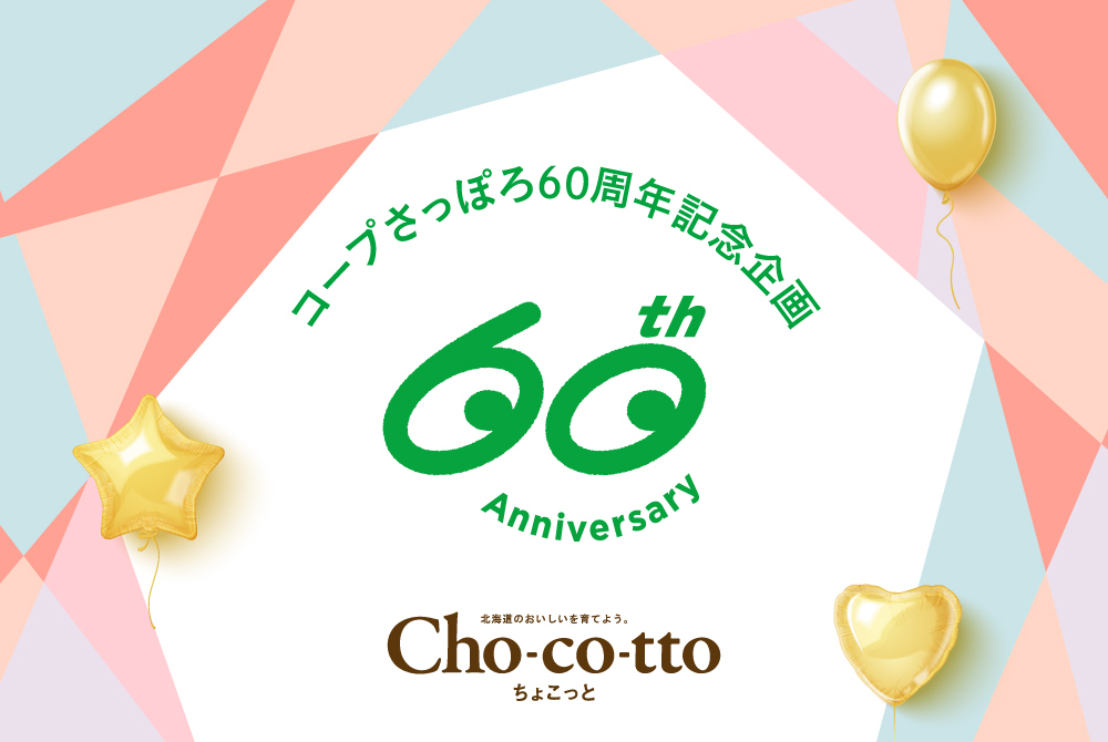コープさっぽろ60周年を記念して、Cho-co-tto(ちょこっと)では特別な企画を実施いたします。ご愛読いただいている皆さまと一緒にCho-co-ttoを振り返る楽しい時間を過ごせたらと思います。