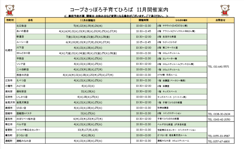 子育てひろば 【事前予約不要・参加無料・時間内出入り自由】