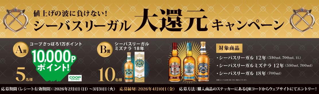 3月31日(火)まで 値上げの波に負けない!シーバスリーガル大還元祭!