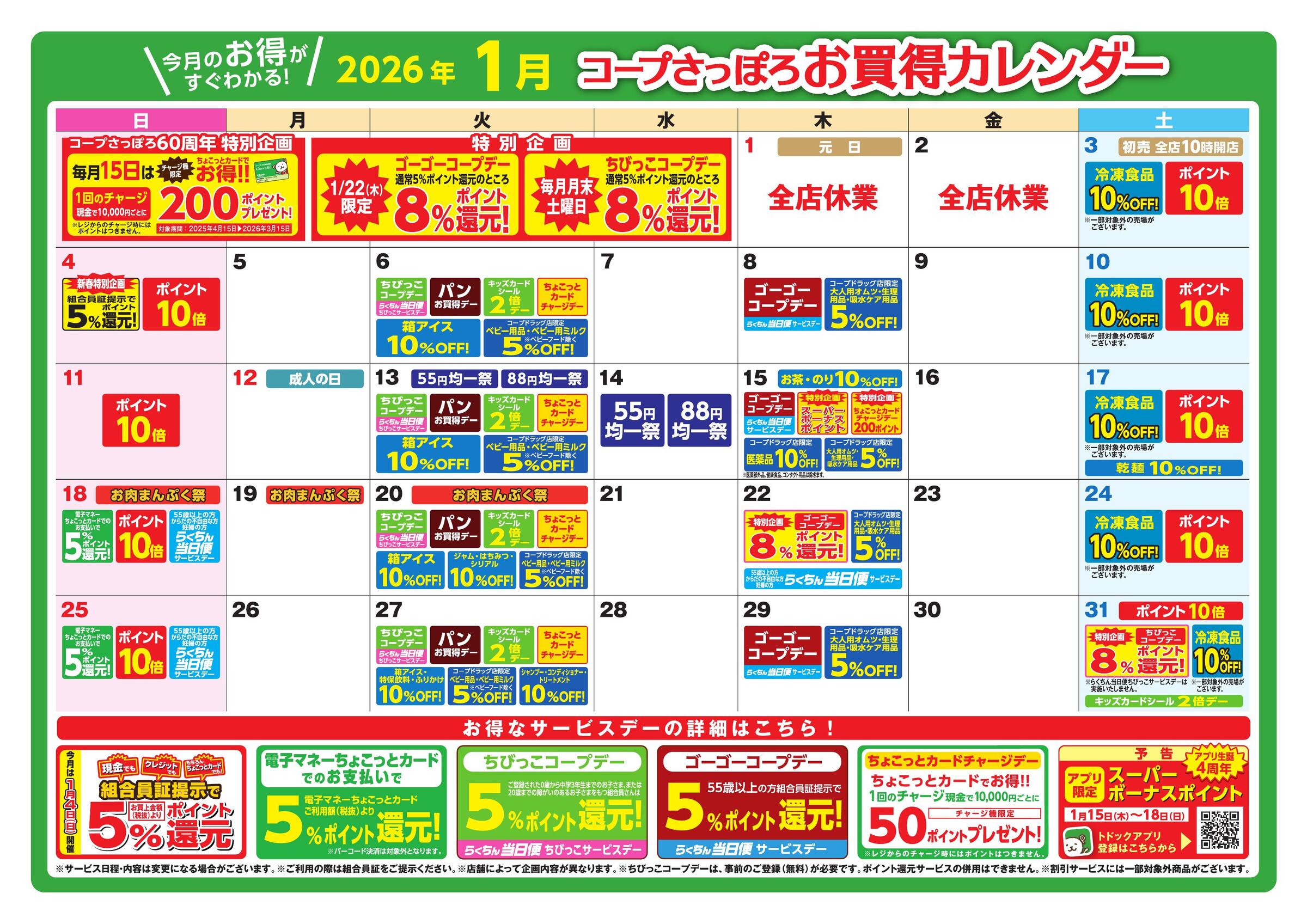 コープさっぽろ店舗お買得カレンダー