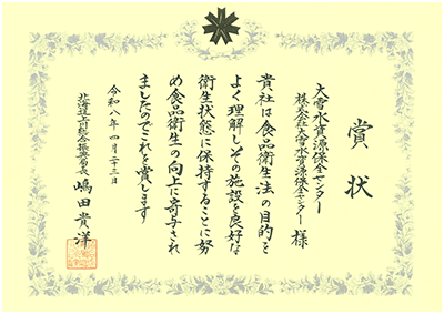 長年にわたりエゾシカ対策の推進に取り組み、人とエゾシカとの適切な関係の構築において、北海道から感謝状をいただきました。今後もエゾシカ肉の販売など地域社会の発展に向けて尽力していきます。