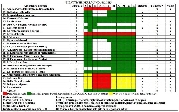 プログラムの受講は、主にWEB予約制。団体の場合は、最低20人から予約可能で、体験料金は、小学生以下:3€、小学生:5€となっている。昼食は2パタンあり、パスタ・サラミ・パン・水のコースは、6€、プリモ・セコンド(肉)・付け合わせ・パン・ドルチェ・水のコースは、10€となっている。アグリツーリズモとして宿泊の受け入れもしており、朝食込で、子ども:25€、大人:50€となっている。食事に関しては、予約時に、子どもたちのアレルギーなど聞く項目も設けており、アレルギー対応もしている。