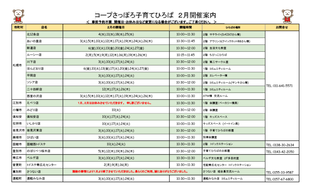 子育てひろば 【事前予約不要・参加無料・時間内出入り自由】