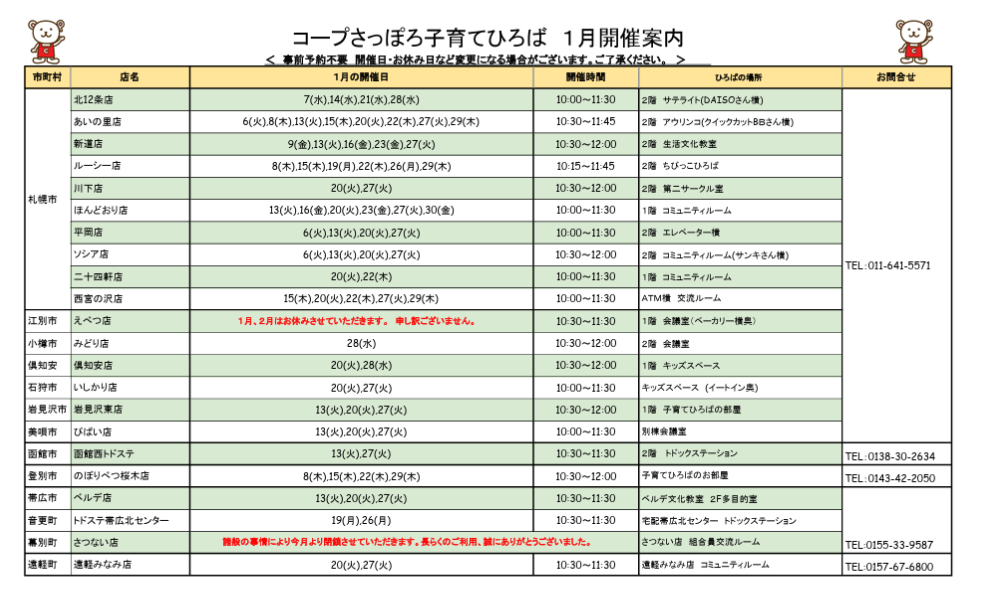 子育てひろば 【事前予約不要・参加無料・時間内出入り自由】