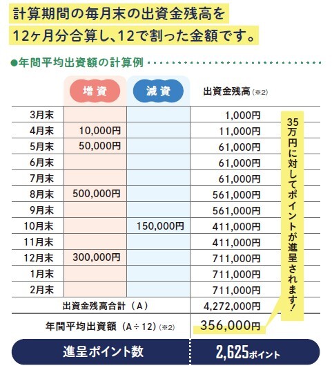 (※2)年間平均出資額とは、毎月末の出資金残高を12か月分合算して12で割った金額です。
