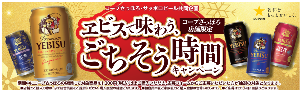 1月20日(火)まで コープさっぽろ×サッポロビール共同企画 エビスで味わう、ごちそう時間キャンペーン