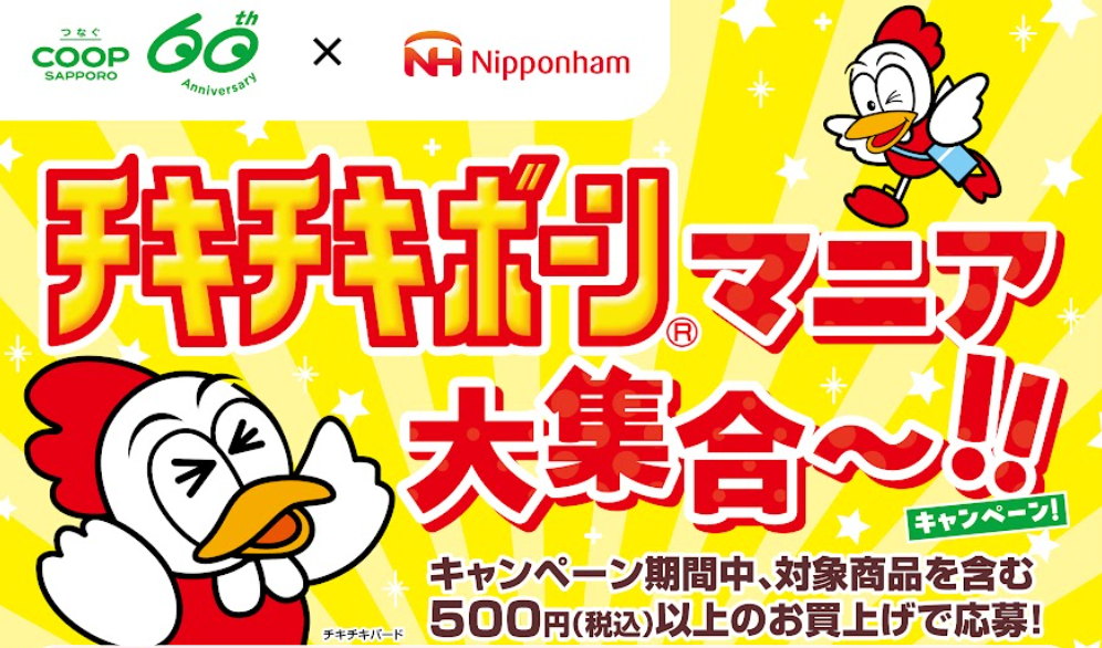 ・キャンペーン期間中にコープさっぽろ店舗または宅配トドックにて、対象商品を税込合計500円以上ご購入で抽選の対象となります。