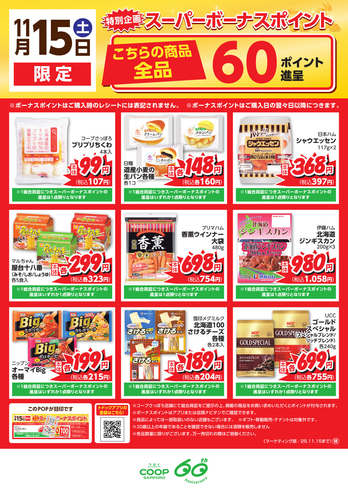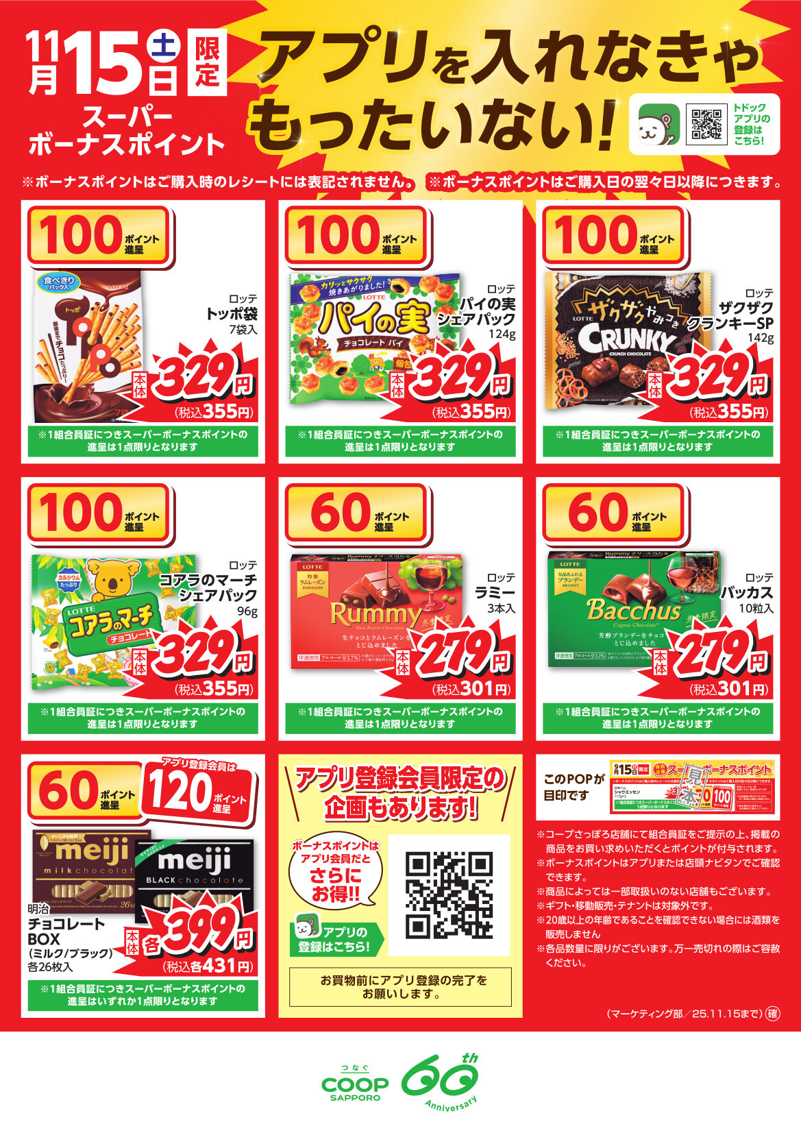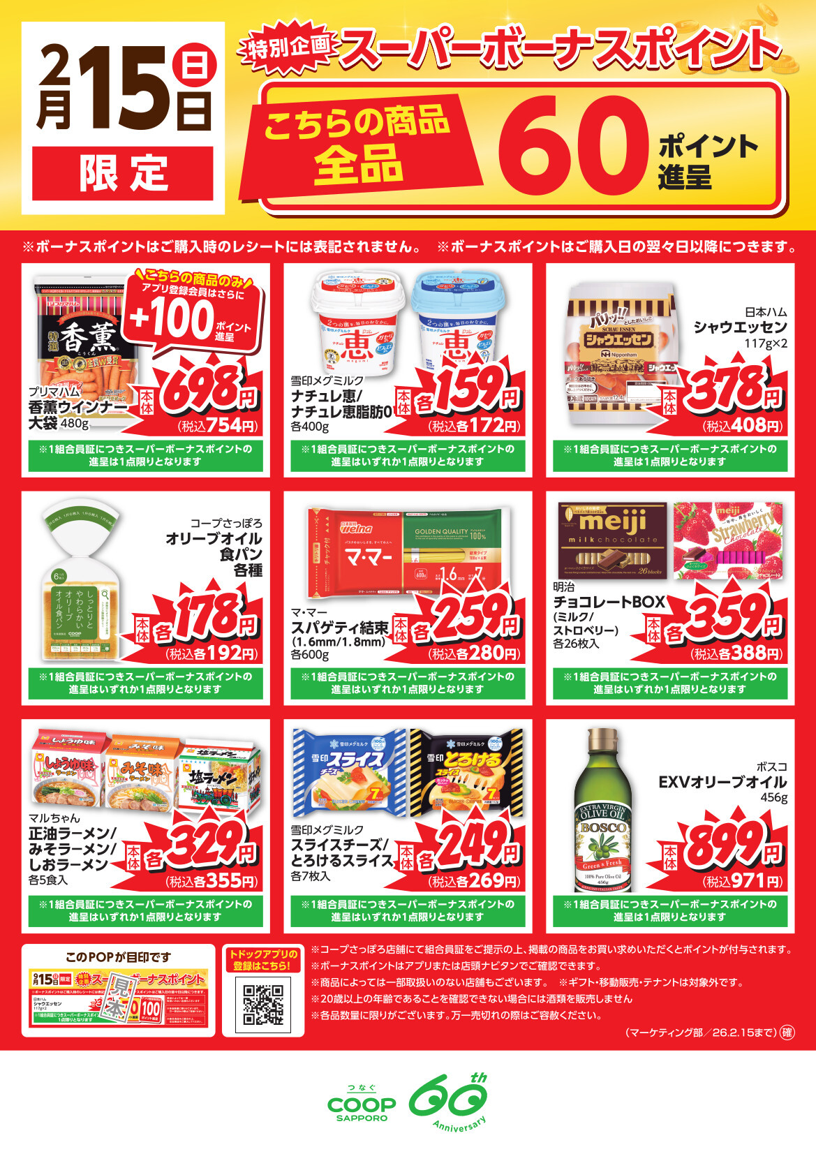 60周年特別企画 15日はちょこっとカード200Pチャージデーも実施!!