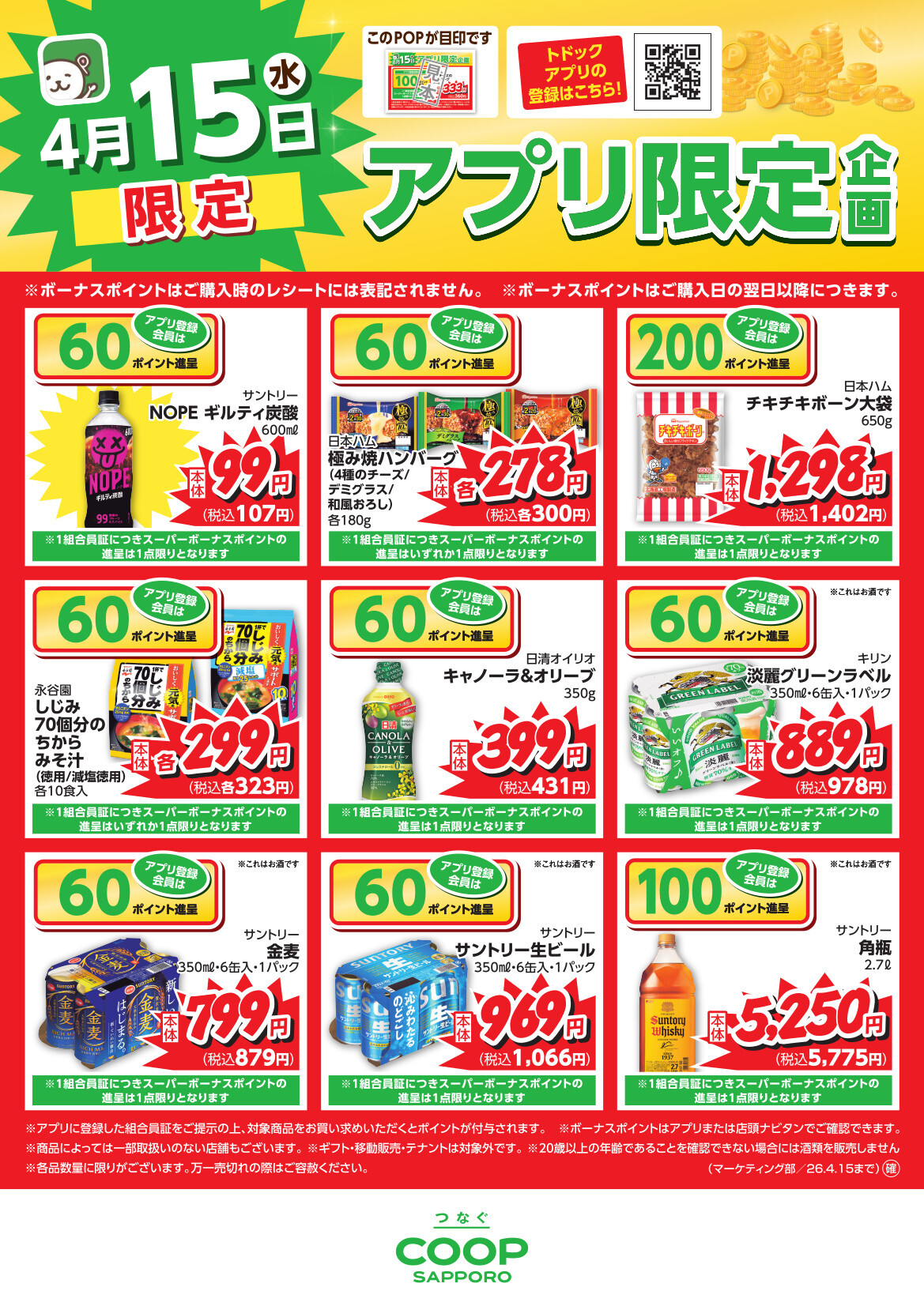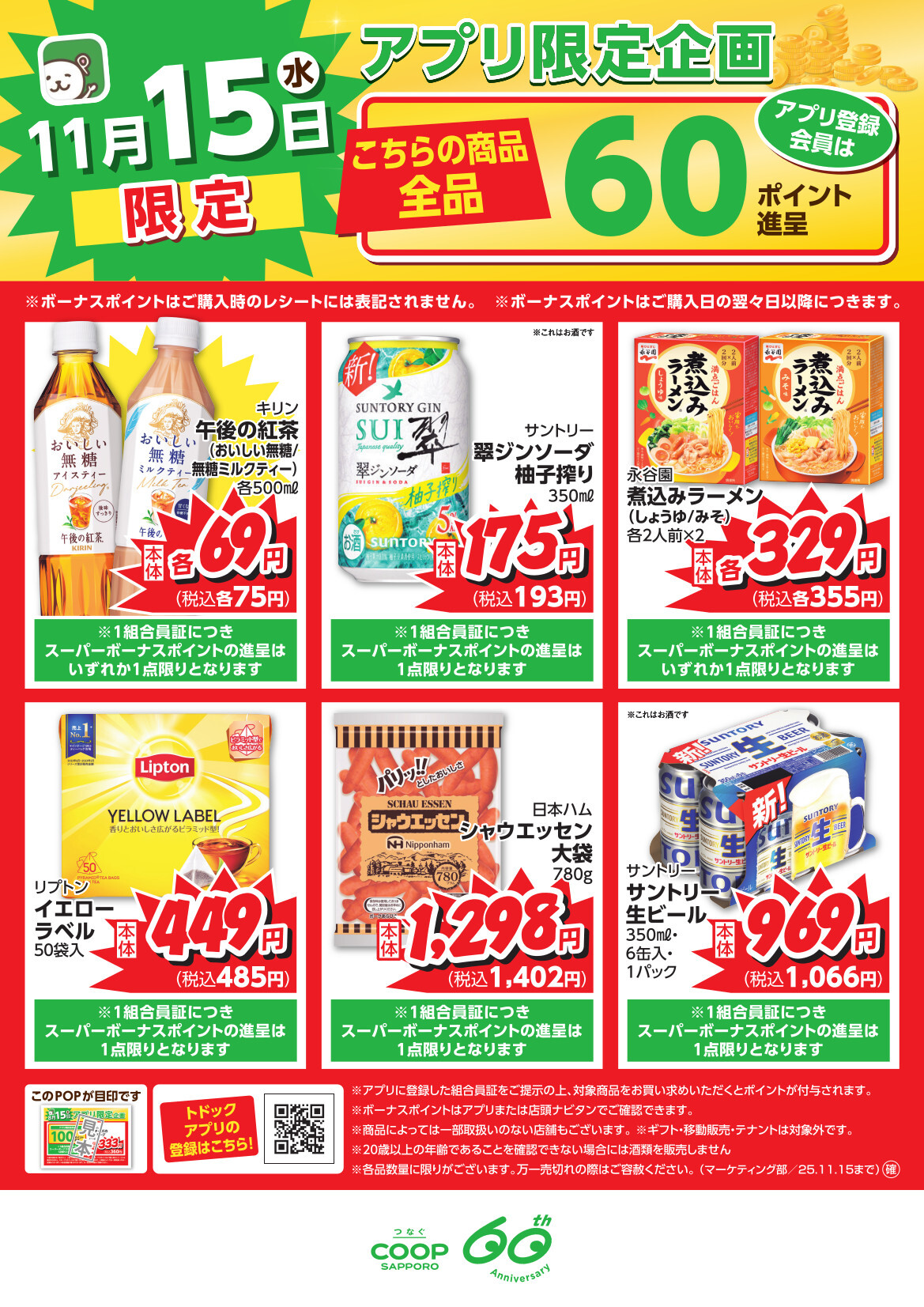 毎月15日はどどーんとポイント還元 アプリ登録者限定企画もございます!