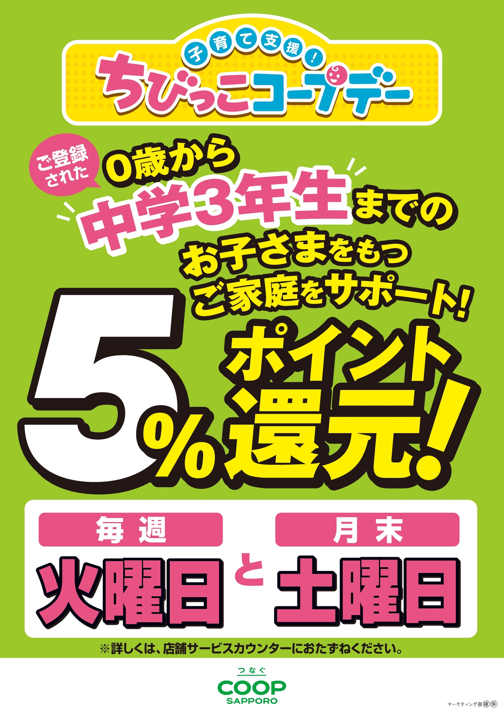 毎週火曜日はちびっこコープデー5%ポイント還元