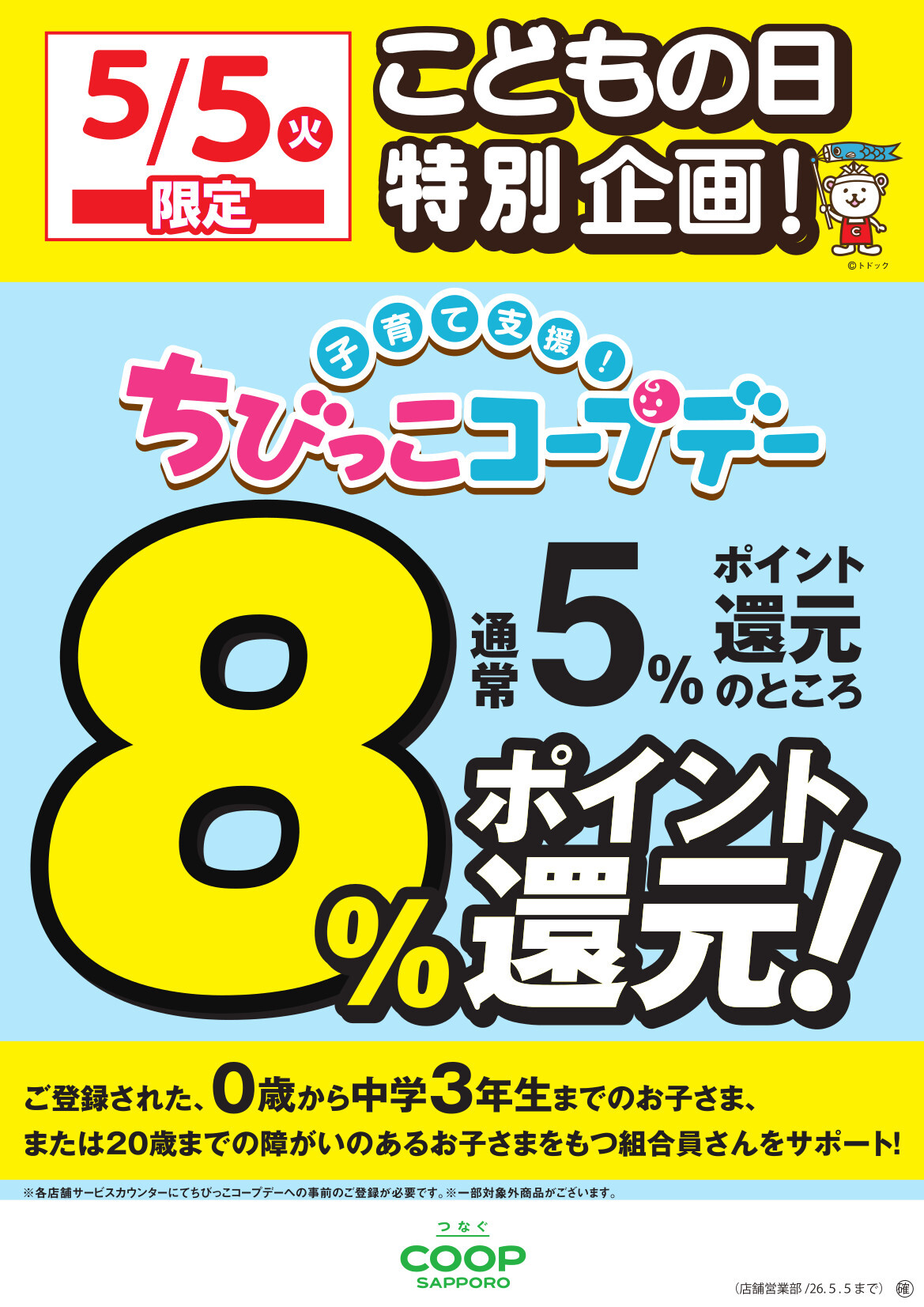 - 特別企画 ちびっこコープデー8%ポイント還元