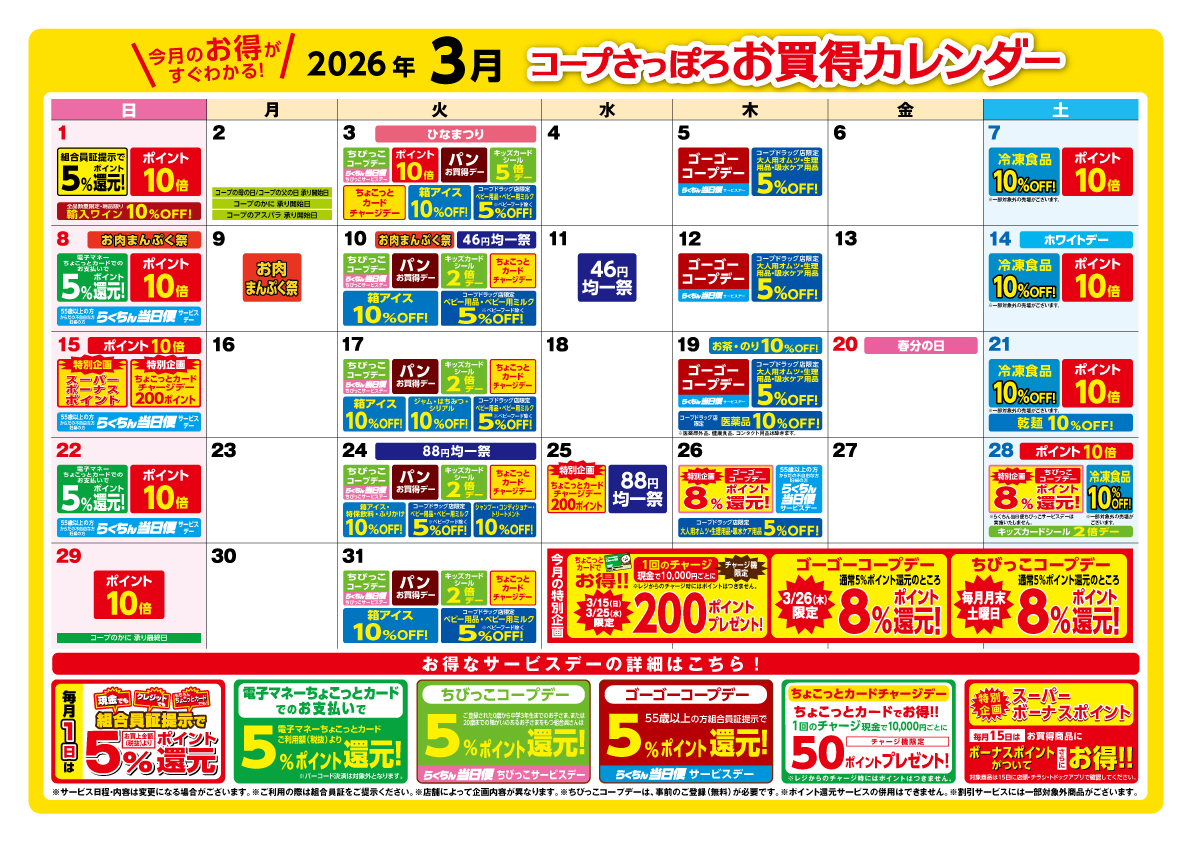 コープさっぽろ店舗お買得カレンダー