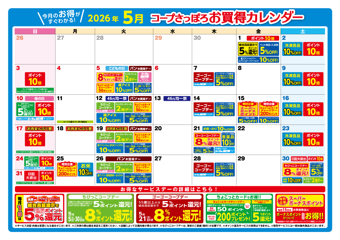 コープさっぽろ店舗お買得カレンダー